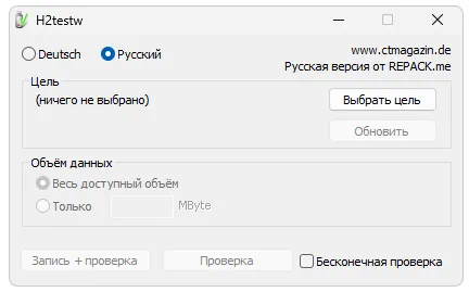 Прежде чем начать тестирование, вам необходимо настроить параметры программы H2testw под ваши нужды.